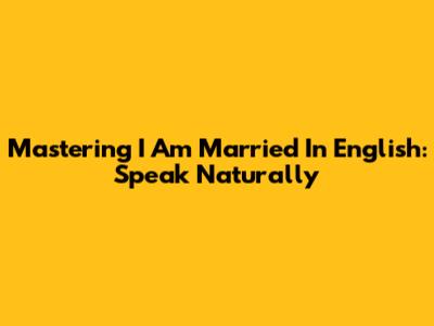 Mastering 'I Am Married' In English: Speak Naturally