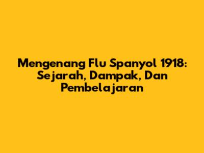 Mengenang Flu Spanyol 1918: Sejarah, Dampak, Dan Pembelajaran