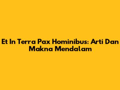 Et In Terra Pax Hominibus: Arti Dan Makna Mendalam