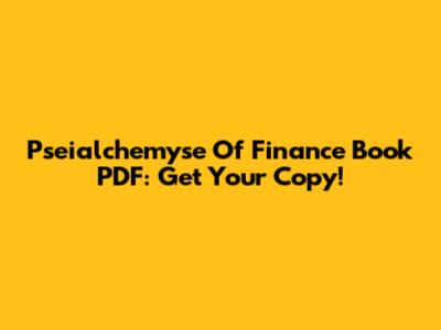 Pseialchemyse Of Finance Book PDF: Get Your Copy!
